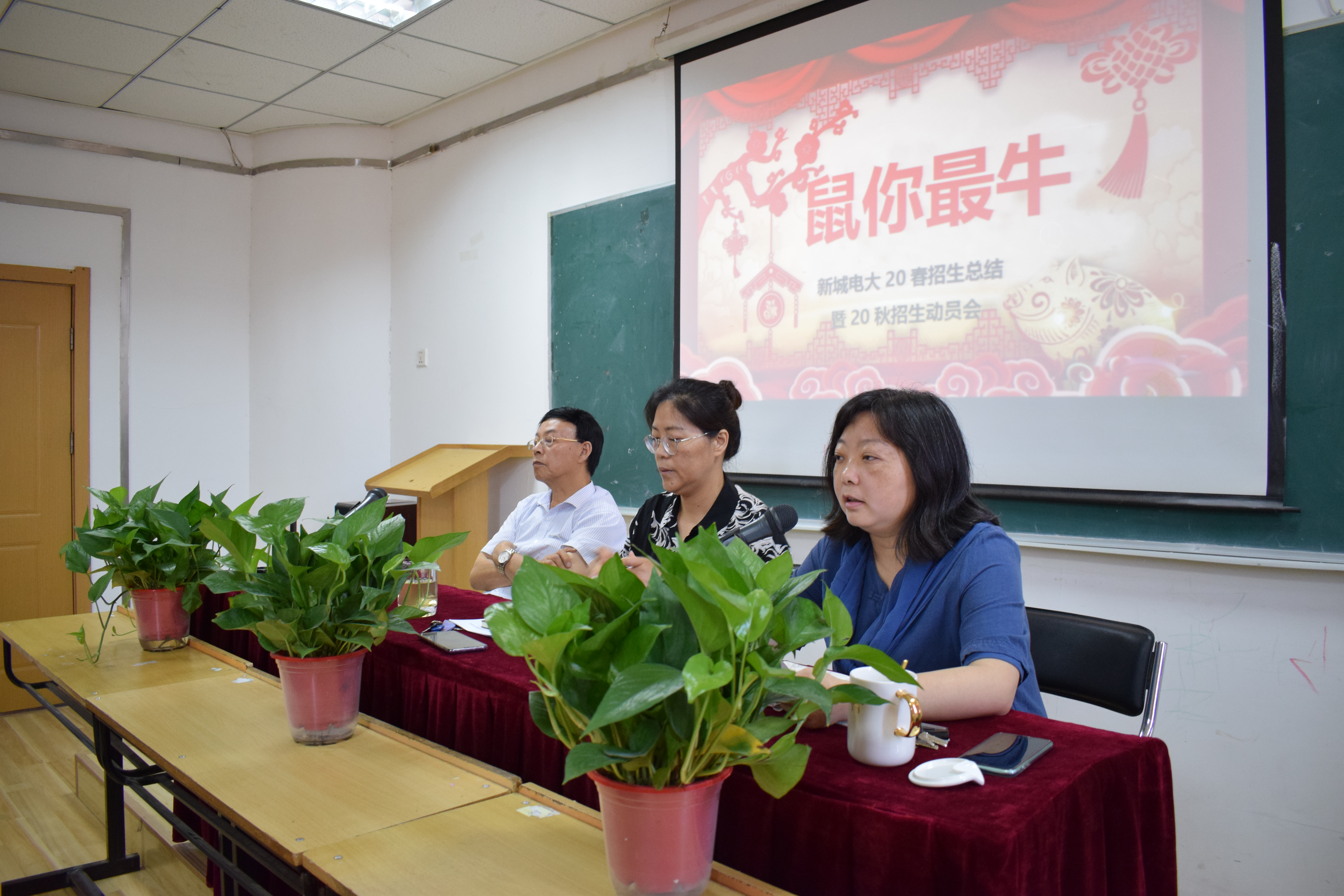 首先,康芳琴校长汇报了我校2020春招生任务完成情况以及全省招生数据统计分析,指出全校教职工不畏艰难、迎难而上,克服了新冠肺炎疫情带来的不利影响,2020春季招生1800人,取得了全省排名第二的可喜成绩,对我校2020春季招工作取得的成绩表示祝贺,对新时代电大精神表示由衷敬佩。康校长总结了2020春季招生的工作经验:一是探索新媒体招生宣传和招生渠道,提升招生宣传和招生效果;二是及时指导、靠前指挥,坚定了依托新城电大的品牌与服务能做好招生的信心和决心;三是因时而为、用好网络,为2020秋季招工作提供了强大的创新力量;四是抓住机遇、着眼招生工作队伍建设,开发新的招生增长点,采用更多宣传措施和优惠政策,深度挖掘“专升本”生源,多措并举不断壮大力量,为我校发展带来新的机遇。