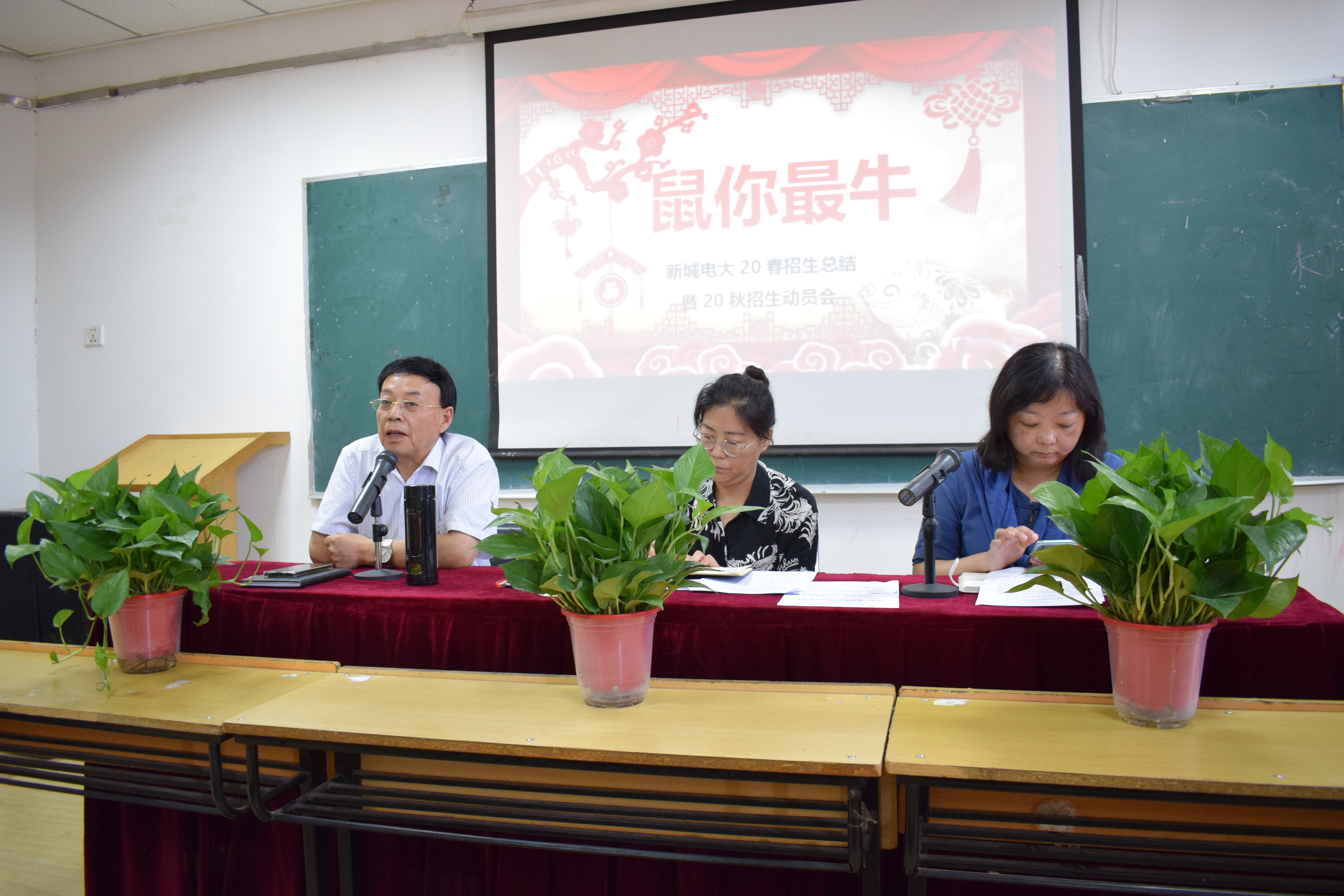 2020年6月18日上午,陕西电大新城分校隆重召开主题为“只争朝夕 真抓实干 努力谱写新城电大新篇章”——2020年春季招生工作总结表彰暨2020年秋季招生工作动员大会,会议总结招生工作经验,查找问题不足,提出招生新举措,谋划2020秋季招生工作。会议由刘宁书记主持,康芳琴校长、俞兴校长等领导出席会议。