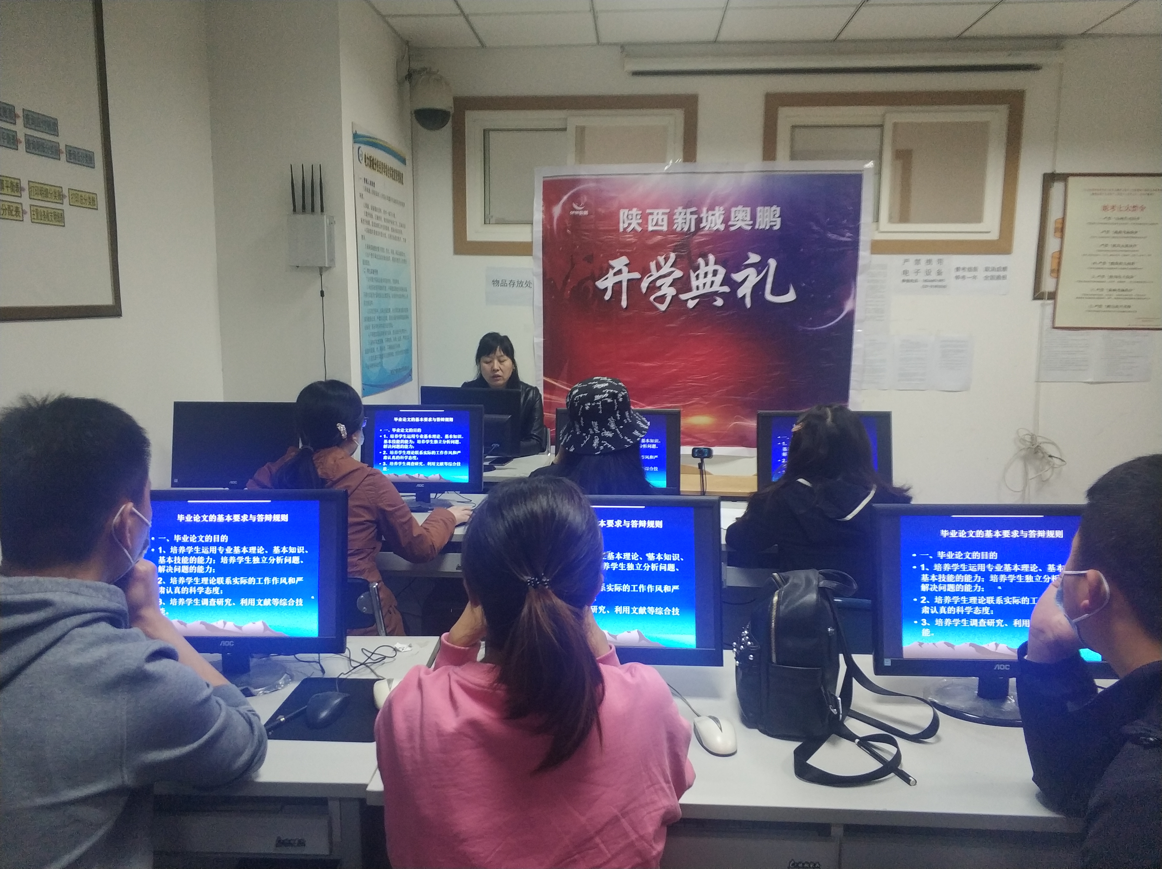 2021年4月18日上午9点,我校进行2021年春季本科学生学位论文写作培训会。会议特邀国家开放大学学位论文评审组成员、陕西开放大学学杨延冰教授进行培训指导。