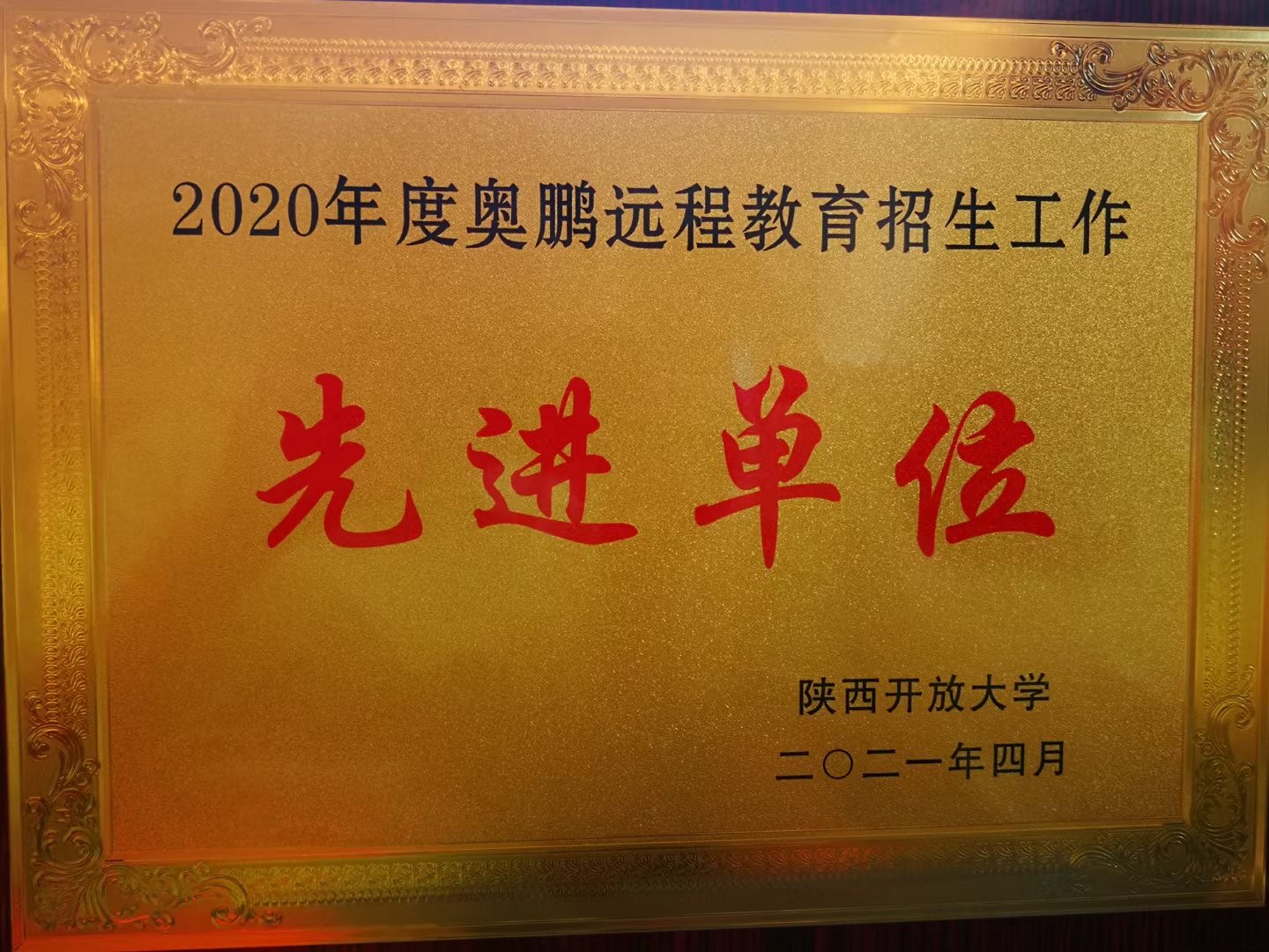 陕西新城奥鹏学习中心荣获2020年度奥鹏教育招生工作先进单位荣誉称号