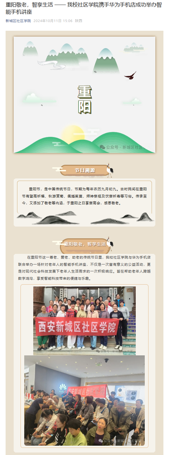 重阳敬老 智享生活 —— 我校社区学院携手华为手机店成功举办智能手机讲座